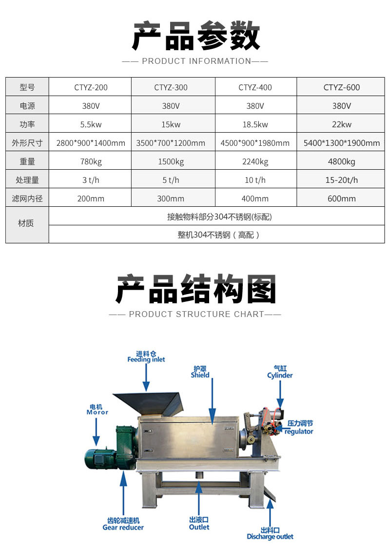 由于待脫水物料種類繁多,不同物料的含水率、分子水比例、粘度、纖維含量、吸水性、韌性、有機物或無機物等等數據各有不同,我公司工程師會根據每一位客戶提供的待脫水的物料進行分析,計算出適用于該物料的參數,制作出適合的設備,將物理壓榨作用利用到**,降低擠出物料含水率。