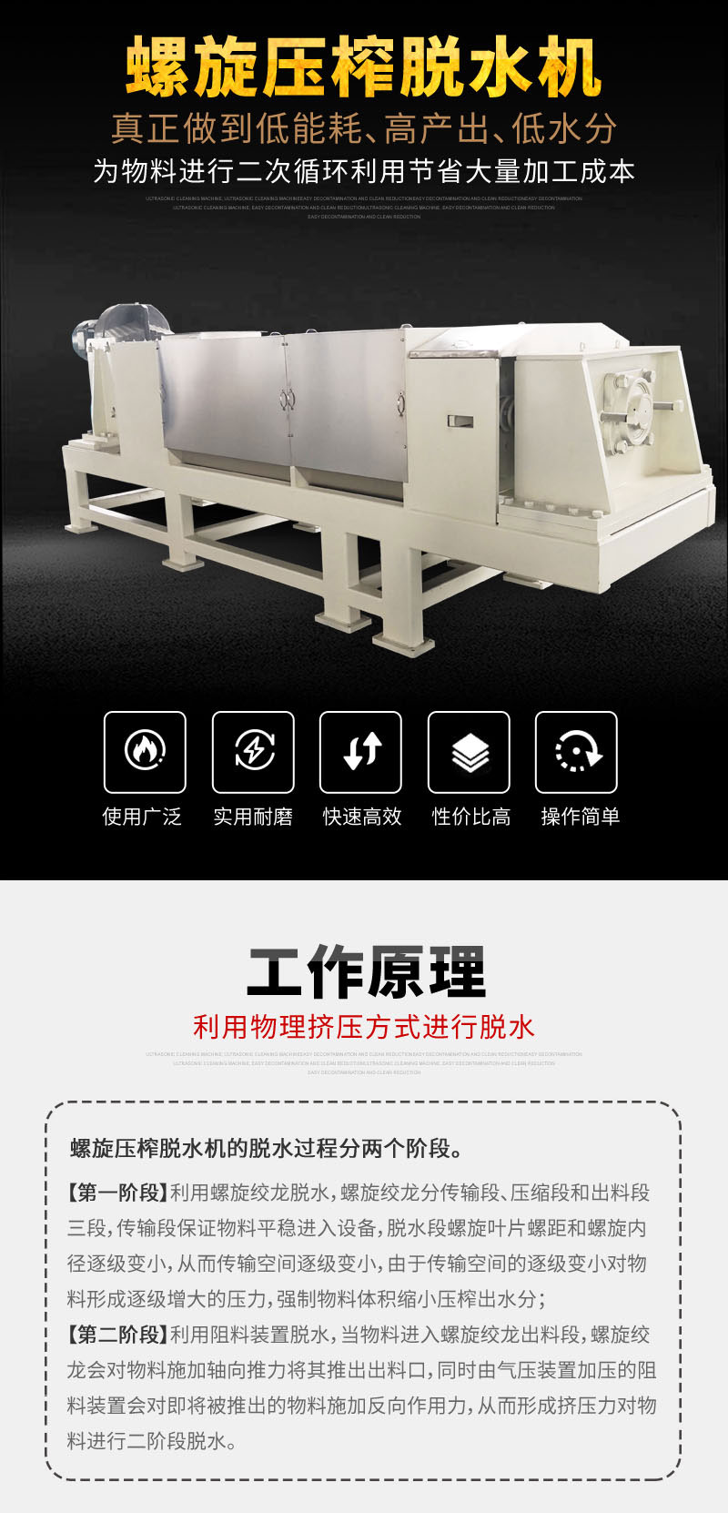 螺旋壓榨機采用物理擠壓脫水原理,脫水過程中無需額外提供熱源,相比同類烘干設備耗能極低。